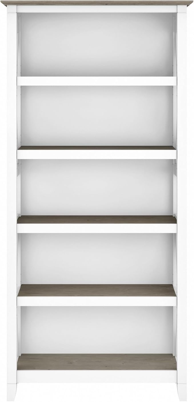 Bush Furniture BSH24470221 Key West 5-Shelf 66-Inch H Bookcase, Shiplap Gray/Pure White