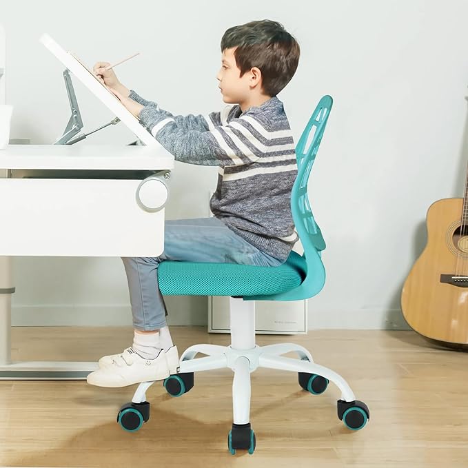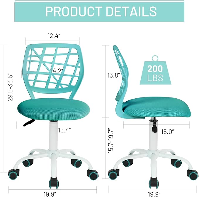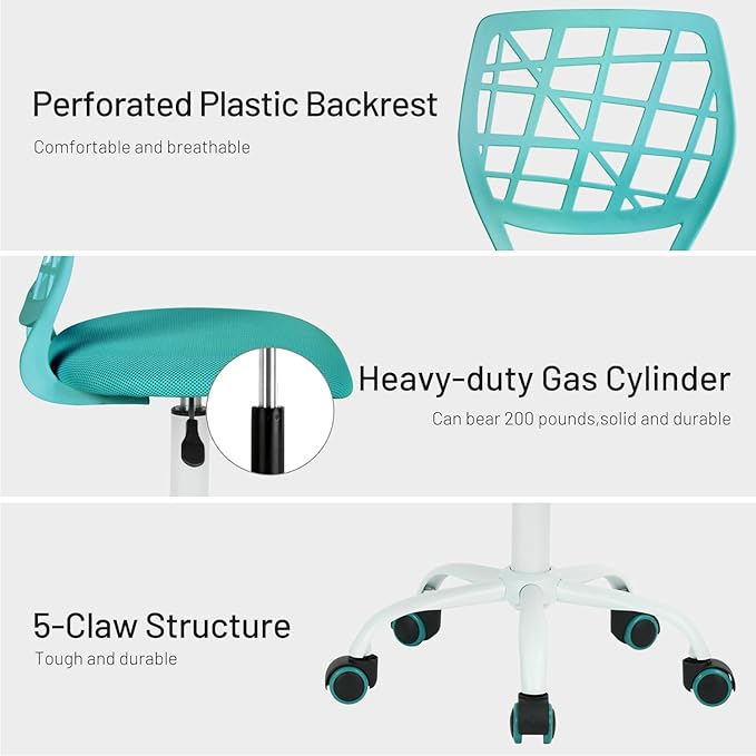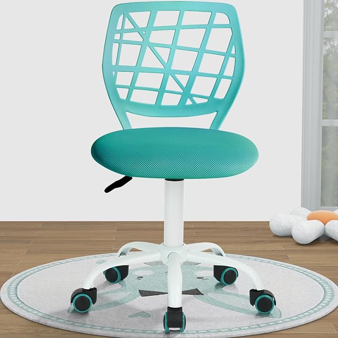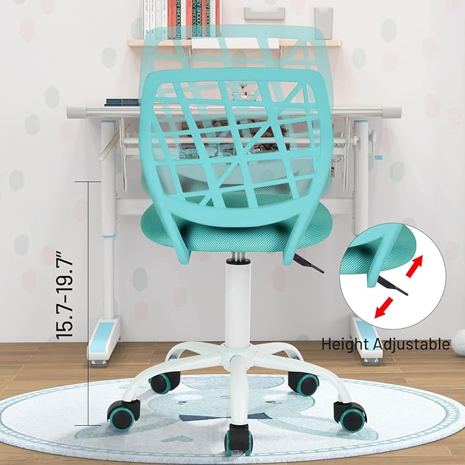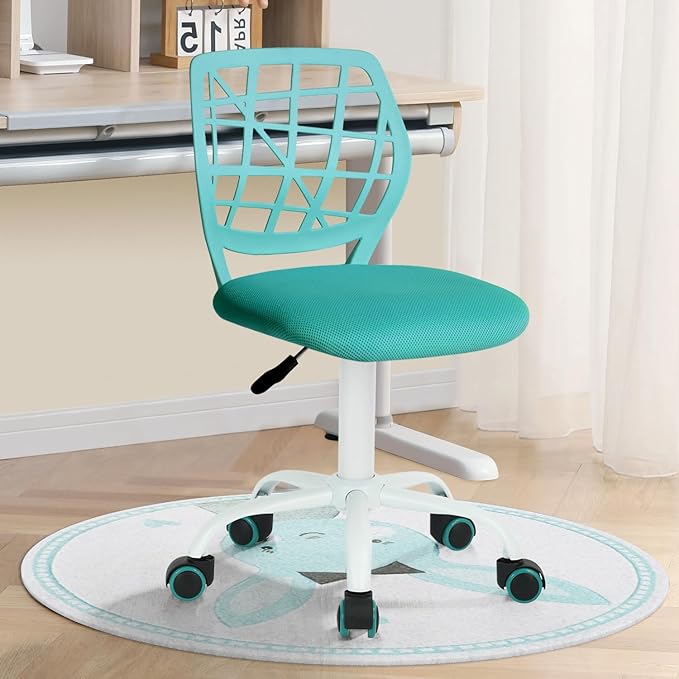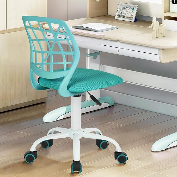 FurnitureR Kids Desk Chair, Armless Office Chair Small Adjsutable Swivel Task Chair with Soft Cushion for Study Kids Teens Child, Turquoise
