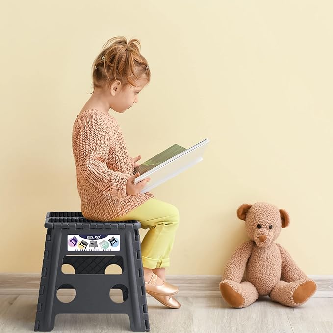 Delxo Folding Step Stool 13 inch Height Heavy Duty Foldable Step Stools for Adults and Kids,Kitchen Small Collapsible Fold Up Stepping Stool 1 Pack in Grey Dotted Texture