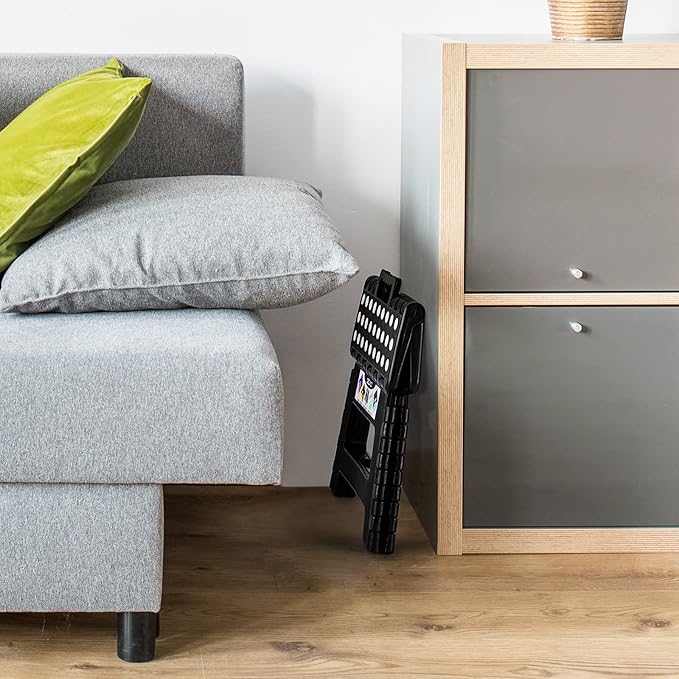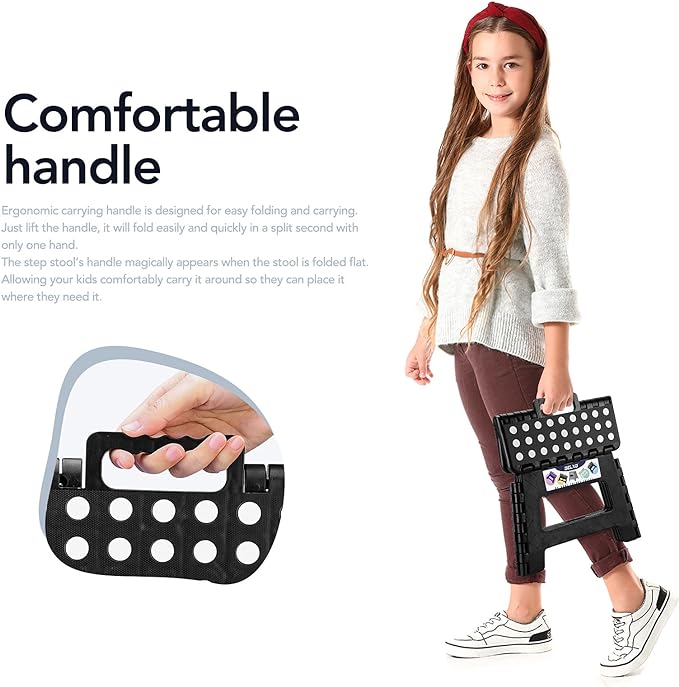 Delxo 9 Inch Folding Step Stool in Black,1 Pack Premium Heavy Duty Foldable Stool for Kids,Portable Collapsible Plastic Step Stool,Non Slip Folding Stools for Kitchen Bathroom Bedroom