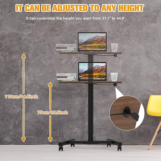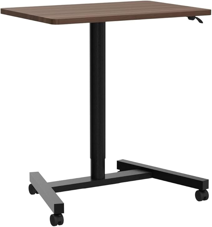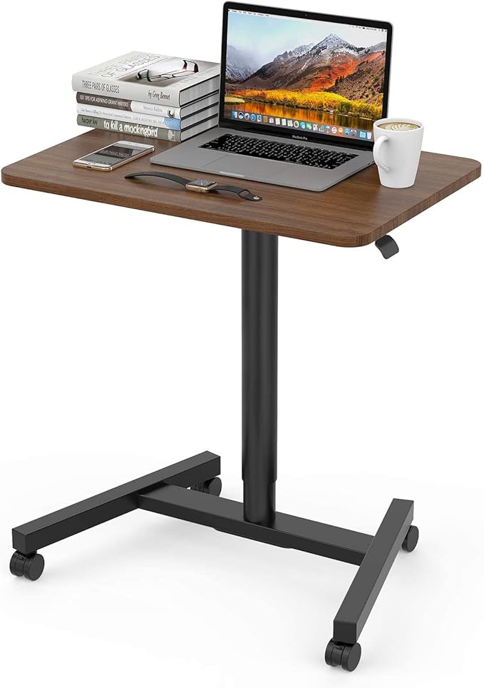 28-Inch Height Adjustable Laptop Desk, Sit-to-Stand Desk with Lockable Wheels, Rolling Standing Mobile Desk Cart for Home Office Classroom (Coffee)