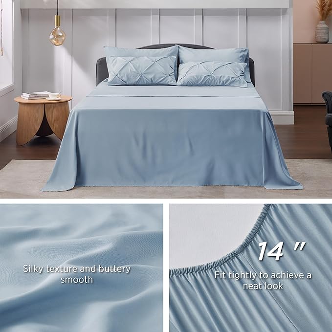 Bedsure California King Comforter Set - Cal King Bed Set 7 Pieces, Pinch Pleat Light Blue Cali King Bedding Set with Comforter, Sheets, Pillowcases & Shams
