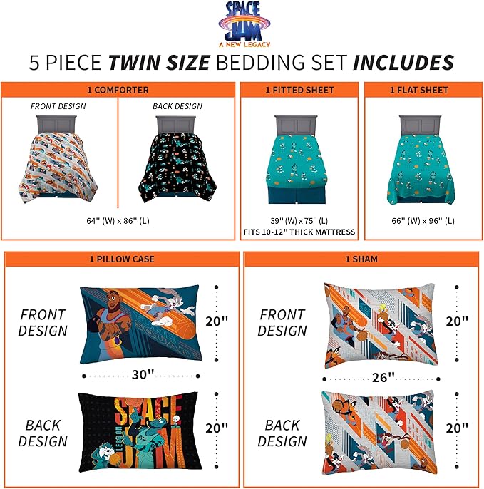 Franco Kids Bedding Super Soft Comforter and Sheet Set with Sham, 5 Piece Twin Size, Space Jam 2 A New Legacy
