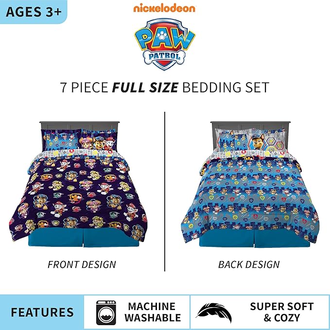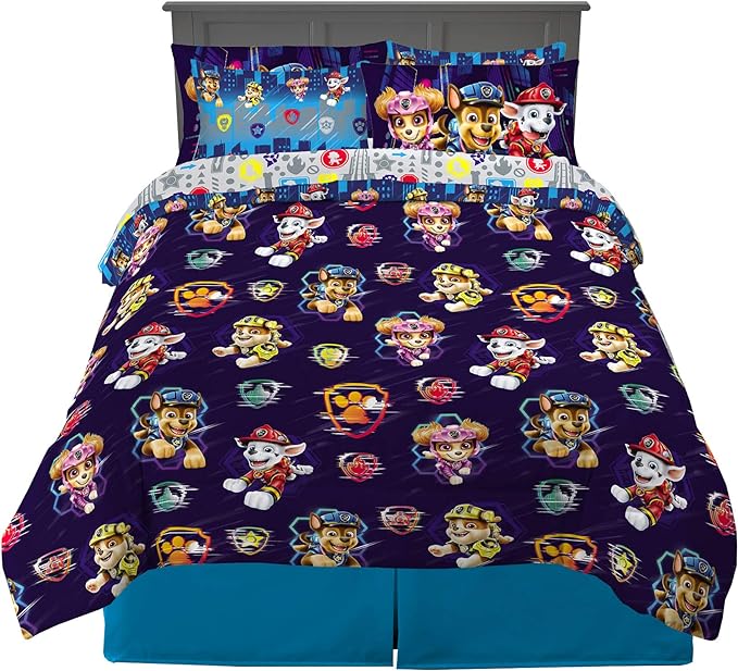 Franco Kids Bedding Super Soft Comforter and Sheet Set with Sham, 7 Piece Full Size, Paw Patrol Movie