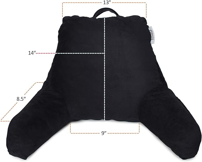 Clara Clark Reading Pillow for Kids, Small Back Pillow for Sitting Up in Bed, Memory Foam Back Support Pillow, Reading Pillows for Sitting in Bed, Black Gaming Pillow for Bed, with Arms and Pockets