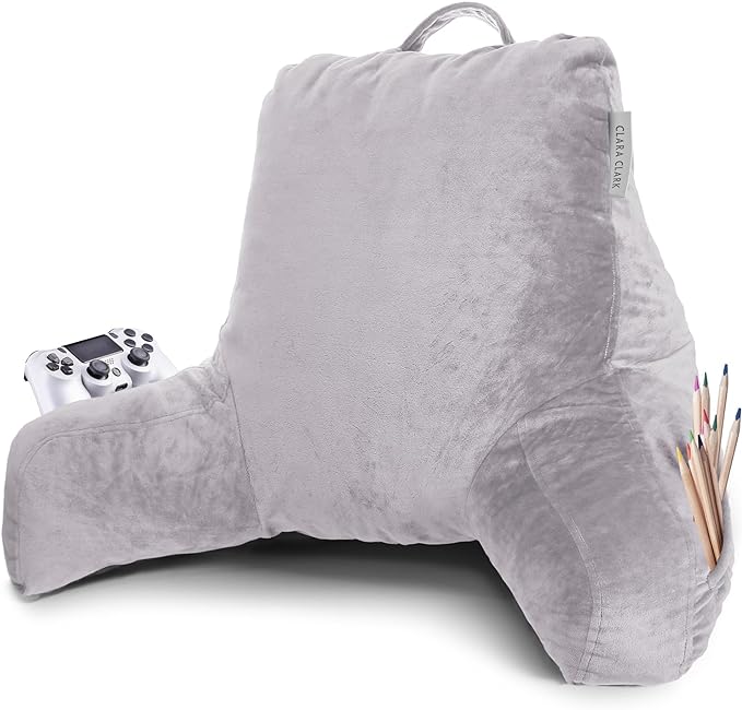 Clara Clark Reading Pillow, Standard Back Pillow for Sitting Up in Bed, Memory Foam Back Support Pillow, Reading Pillows for Sitting in Bed, Grey Lavender Sit Up Pillow for Bed Arm Pillow with Pockets