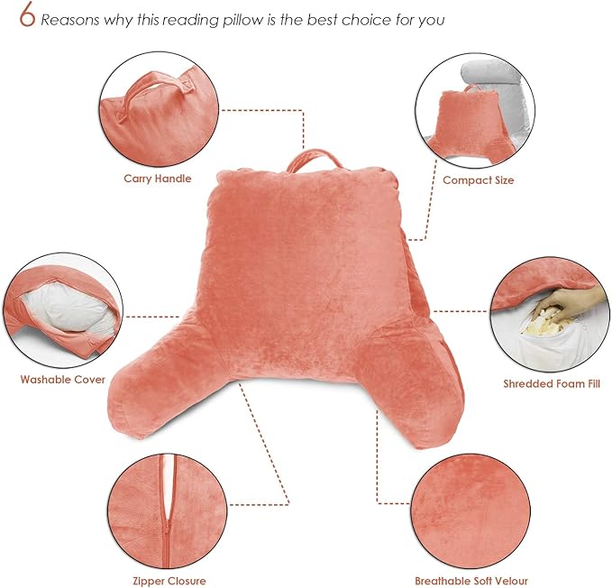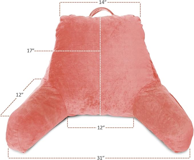 Clara Clark Reading Pillow, Standard Back Pillow for Sitting Up in Bed, Memory Foam Back Support Pillow, Reading Pillows for Sitting in Bed, Misty Rose Sit Up Pillow for Bed, Arm Pillow with Pockets