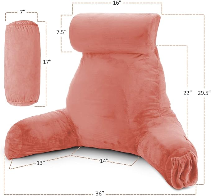Clara Clark Reading Pillow, Large Back Pillow for Sitting Up in Bed, Memory Foam Back Support Pillow, Reading Pillows for Sitting in Bed Adult, Misty Rose Sit Up Pillow for Bed with Arms and Pockets
