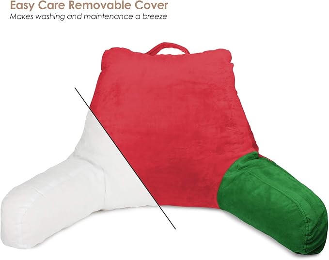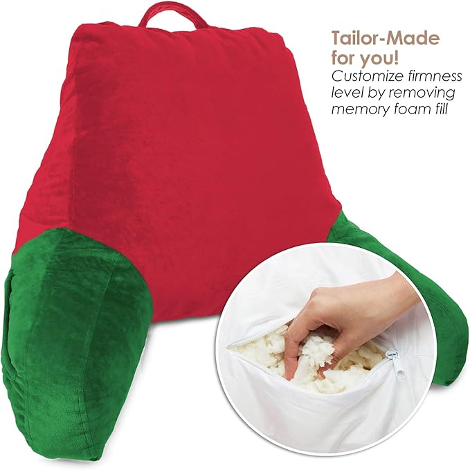 Clara Clark Reading Pillow for Kids, Small Back Pillow for Sitting Up in Bed, Memory Foam Back Support Pillow, Reading Pillows for Sitting in Bed, Holiday Color Gaming Pillow with Arms and Pockets