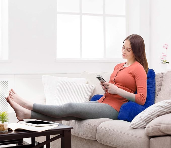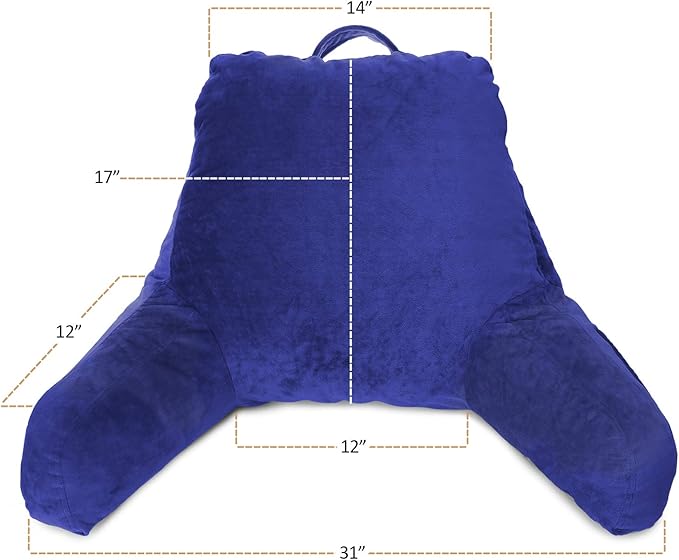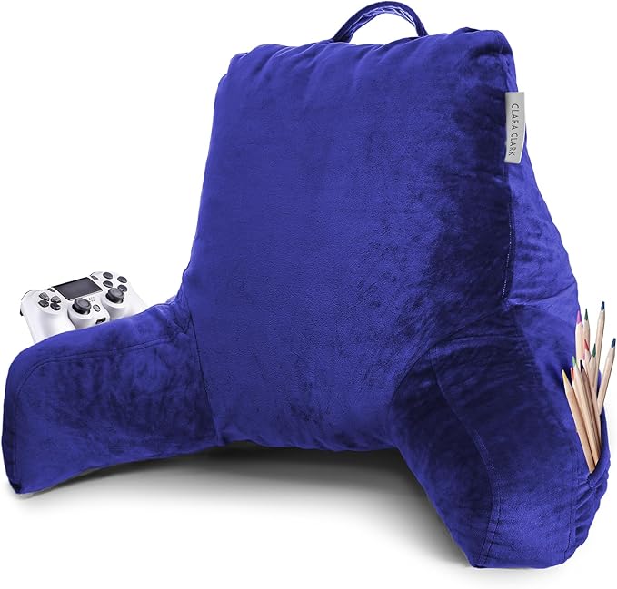 Clara Clark Reading Pillow, Standard Back Pillow for Sitting Up in Bed, Memory Foam Back Support Pillow, Reading Pillows for Sitting in Bed, Royal Blue Sit Up Pillow for Bed, Arm Pillow with Pockets