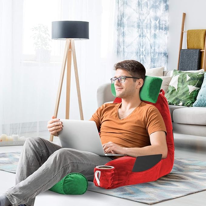 Clara Clark Reading Pillow, Large Back Pillow for Sitting Up in Bed, Memory Foam Back Support Pillow, Reading Pillows for Sitting in Bed Adult Holiday Color Sit Up Pillow for Bed with Arms and Pockets