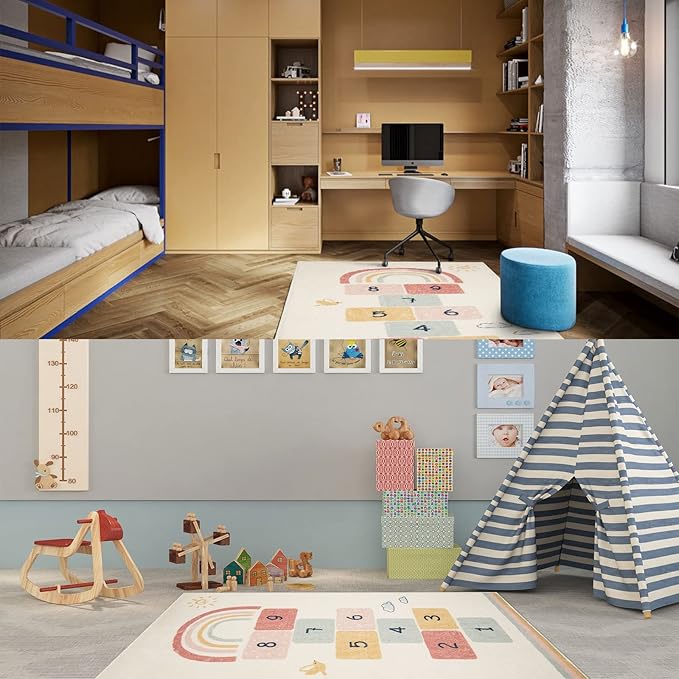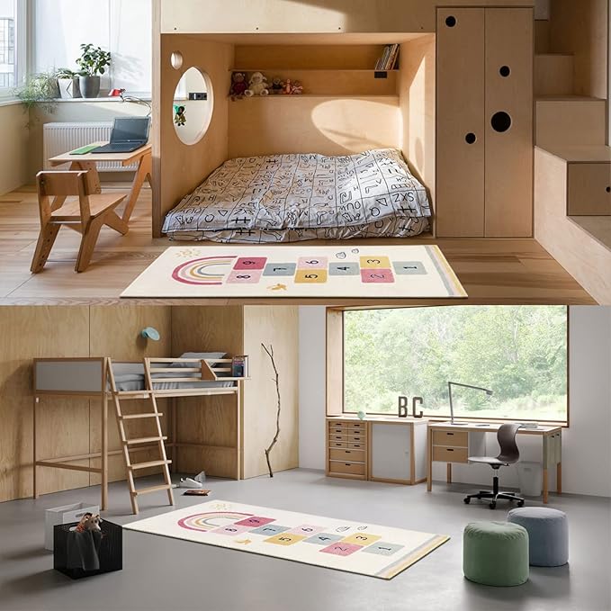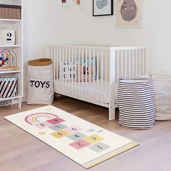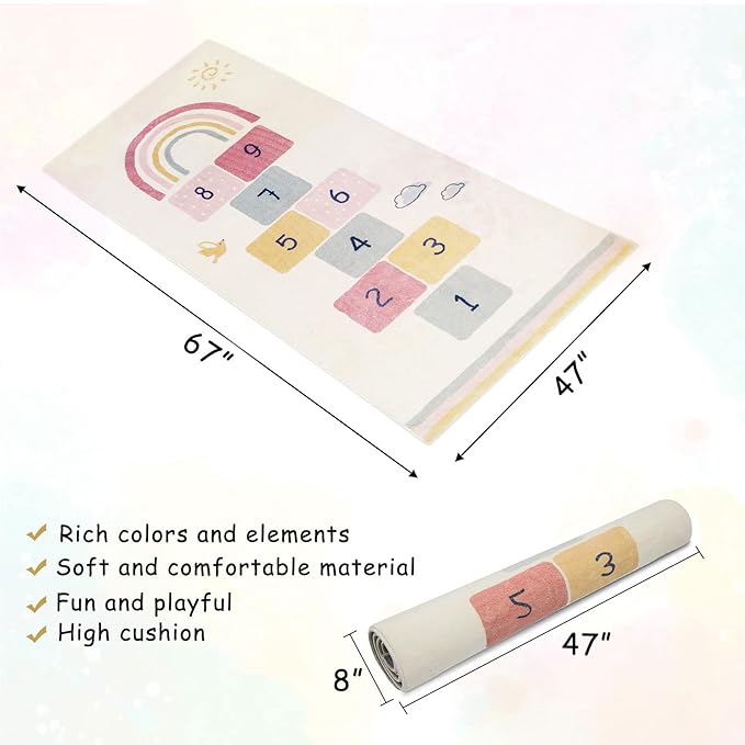 Topotdor Rainbow Sky Hopscotch Game Rugs,Kids Play Area Rugs Soft Floor Carpet for Bedroom Playroom Nursery,Great Gift for Girls & Boys,47" x 67"