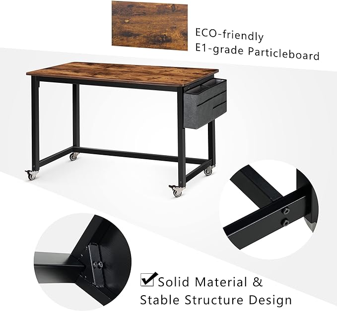 About This MINIMALIST DESIGN: Simple and modern AHB rolling computer desk features industrial rustic brown tabletop and metal frame. It...