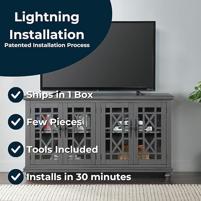 Martin Svensson Home Elegant TV Stand, 63" W x 35" H, Grey