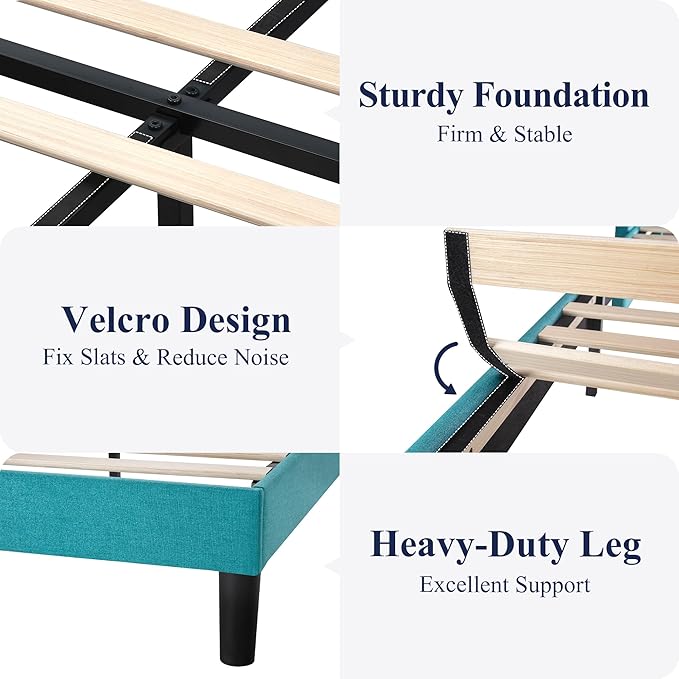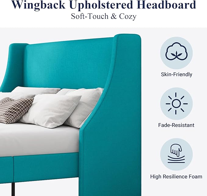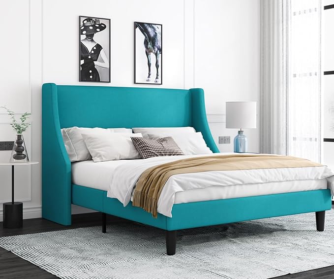 Allewie Queen Bed Frame, Platform Bed Frame Queen Size with Upholstered Headboard, Modern Deluxe Wingback, Wood Slat Support, Mattress Foundation, Peacock Green