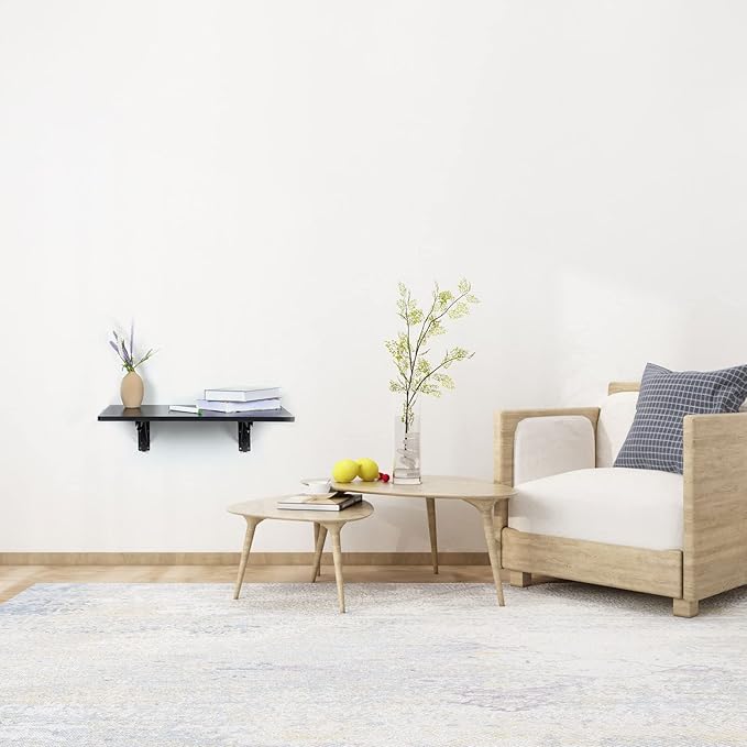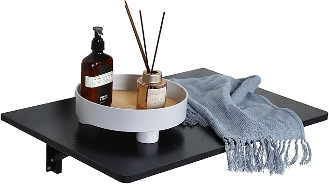 Folding Wall Desk, Wall Desk Fold Down Wall Mounted Desk for Small Space, Floating Desk (Black, Medium)