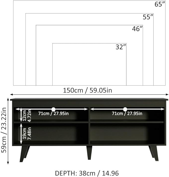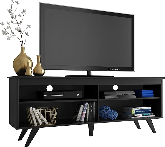 Madesa TV Stand with 4 Shelves and Cable Management, Entertainment Center for TVs up to 65 Inches, Wood, 23'' H x 15'' D x 59'' L – Black