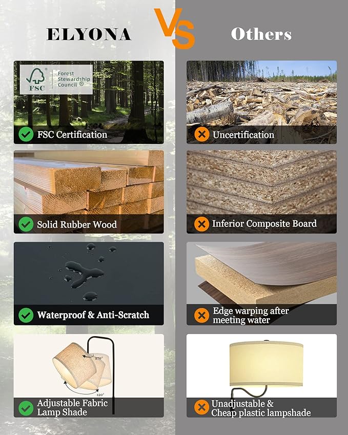 About This đăWhy can you trust ELYONA's Solid Wood?ăâ Unlike fiberboardâs wood grain paper surface and is glued with unknown woodchips...