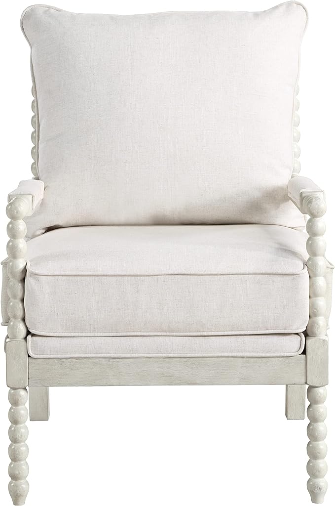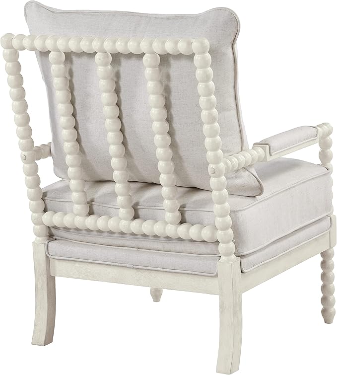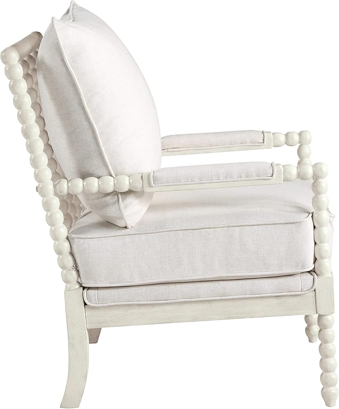 OSP Home Furnishings Kaylee Spindle Accent Chair with Antique Wood Frame, 26.5” W x 32.25” D x 37” H, White Linen Fabric