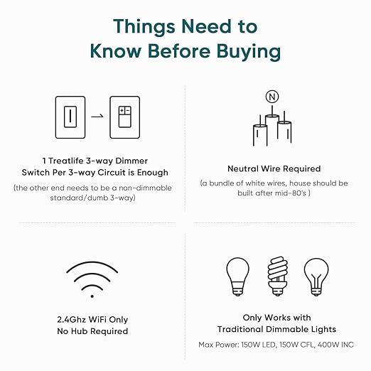 About This Notes Before Buying: A Neutral wire is required, standard wall plate size. Treatlife 3-way dimmer switch works with...