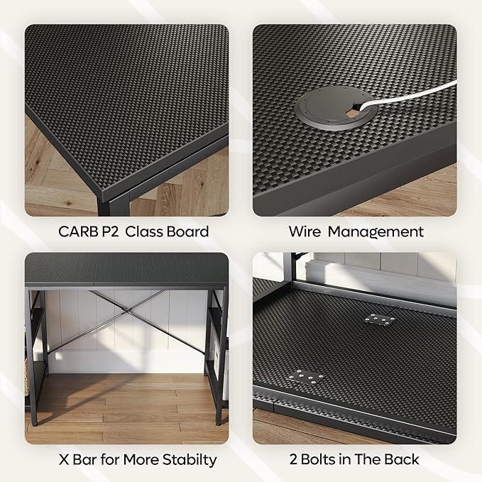 Bestier L Shaped Gaming Desk with Shelves 95.2 Inch Reversible Corner Computer Desk or 2 Person Long Table for Home Office Large Writing Storage Workstation P2 Board with 3 Cable Holes, Carbon Fiber