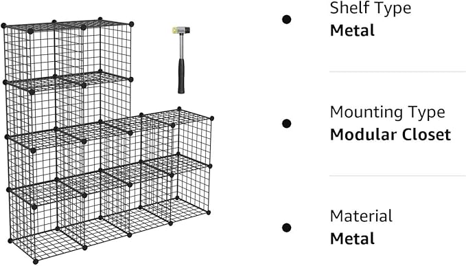 TUMUCUTE Wire Storage Cubes, Metal Storage Shelves Bookshelf, Stackable Modular Closet Organizer for Bedroom Living Room, Office, Black (12 Cubes, Iron)