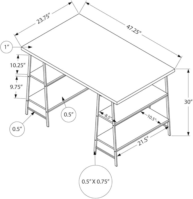 Monarch Specialties 7521 Computer Desk, Home Office, Laptop, Storage Shelves, 48" L, Work, Metal, Laminate, White, Contemporary, Modern Desk-48, 47.25" L x 23.75" W x 30" H