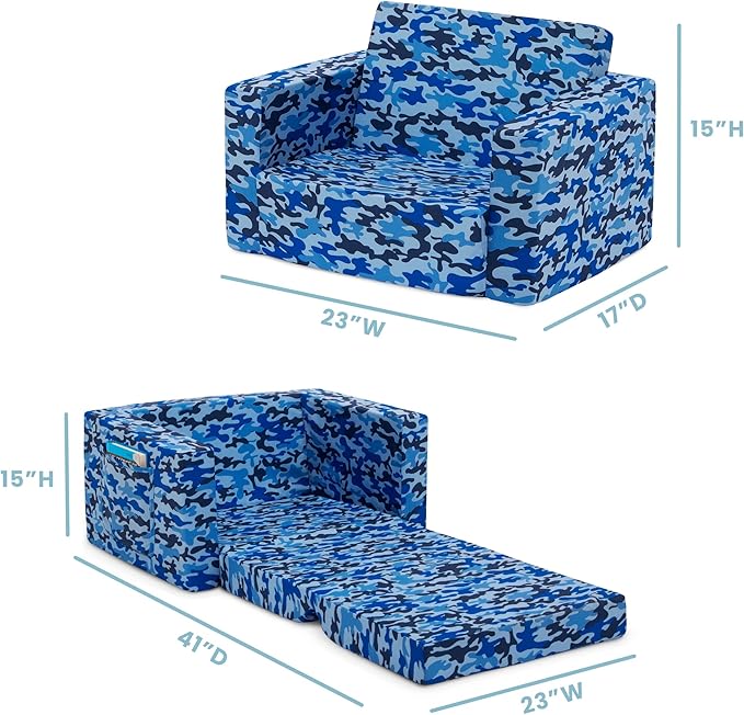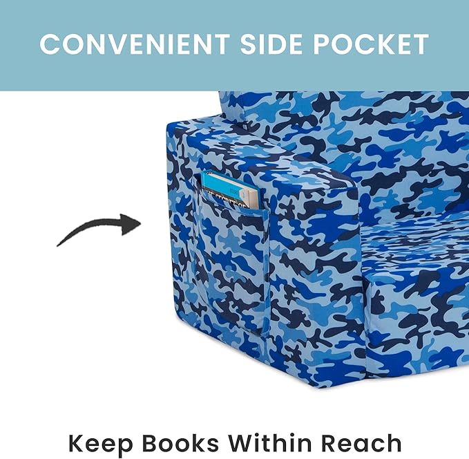 Delta Children Cozee Blue Camo Convertible Foam Chair to Lounger for Kids