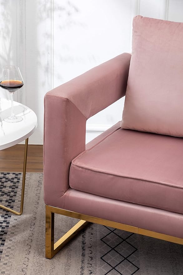Roundhill Furniture Lenola Upholstered Accent Arm Chair, Pink 27.5D x 29.75W x 34.5H in