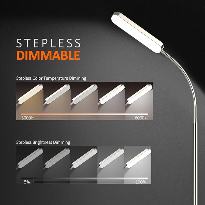 Floor Lamp, 15w/1000lm Bright LED Floor Lamp with Stepless Adjustable 3000K-6000K Colors and Dimmer, Remote and Touch Control Reading Lamp, Adjustable Gooseneck Floor Lamp for Living Room