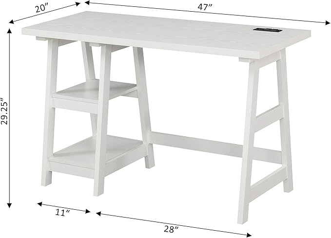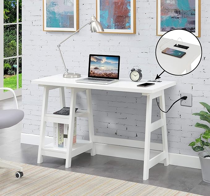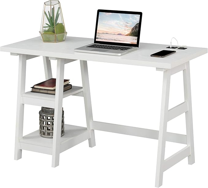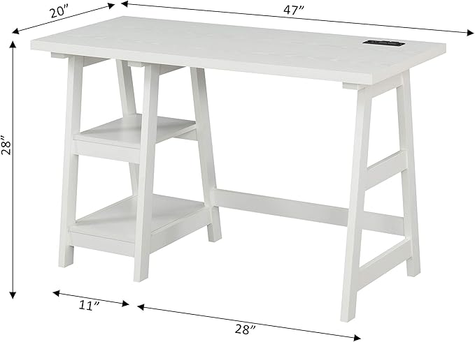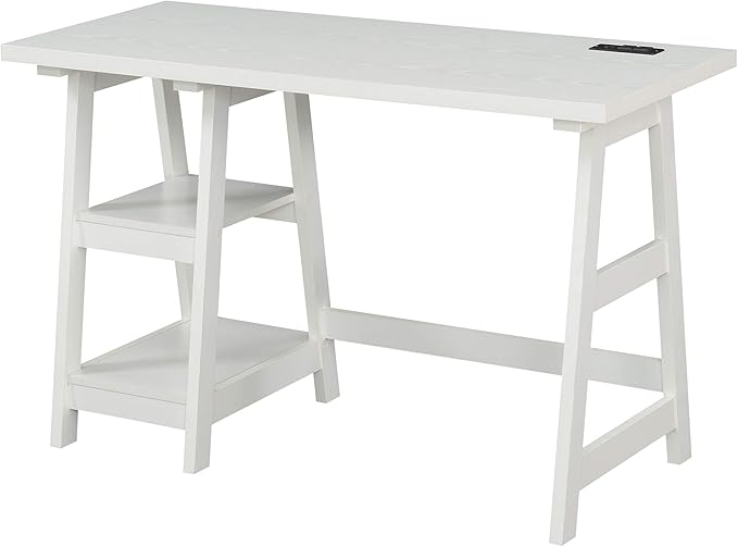 Convenience Concepts Designs2Go Trestle Desk with Charging Station and Shelves, White