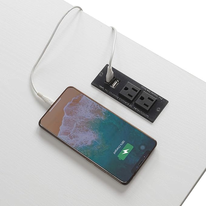 About This Part of Designs2Go Collection 2 Open Fixed Sturdy Shelves Includes 2 Standard Plug Outlets & 2 USB Ports...