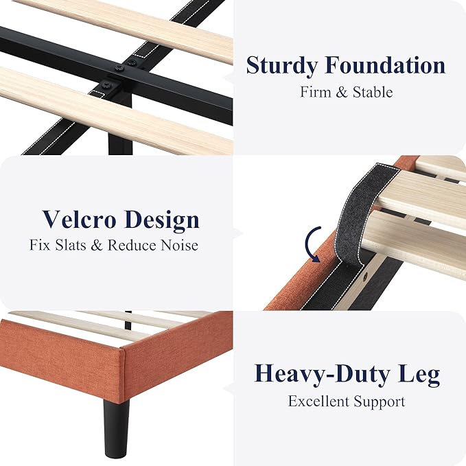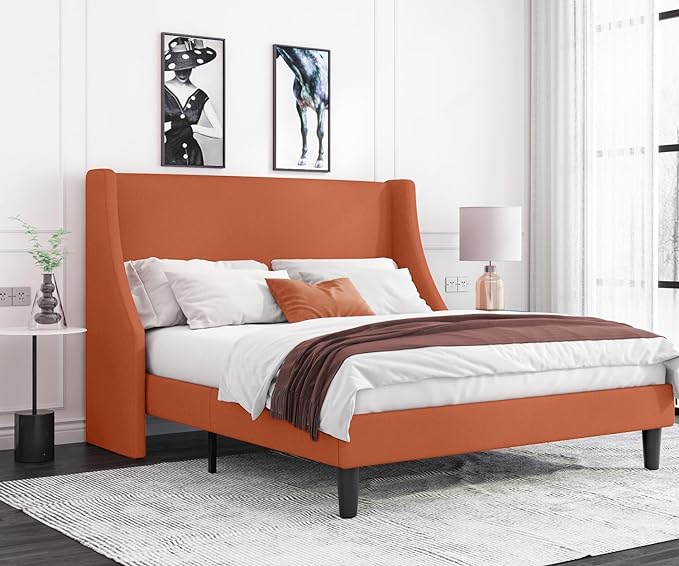 Allewie Full Size Bed Frame, Platform Bed Frame with Upholstered Headboard, Modern Deluxe Wingback, Wood Slat Support, Mattress Foundation, Burnt Orange