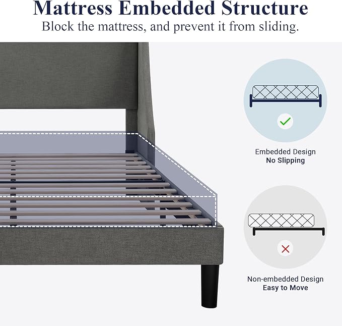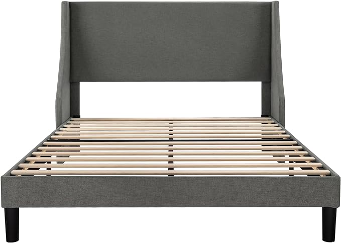 Allewie Full Size Bed Frame, Platform Bed Frame with Upholstered Headboard, Modern Deluxe Wingback, Wood Slat Support, Mattress Foundation, Light Grey