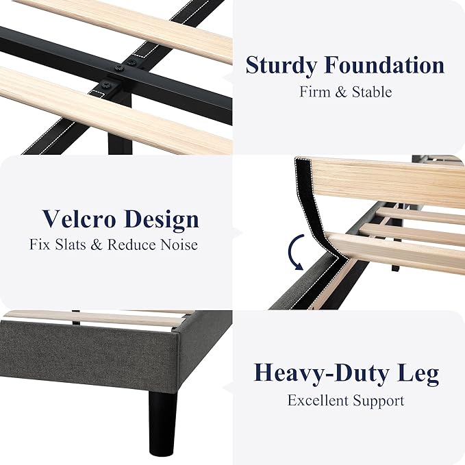 About This Stylish and Comfortable: Experience style and comfort like never before with our upholstered bed frame. With its deluxe...