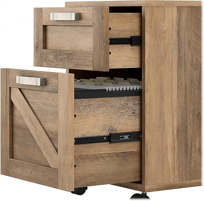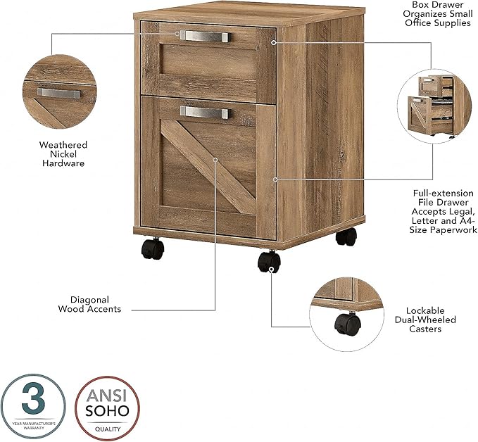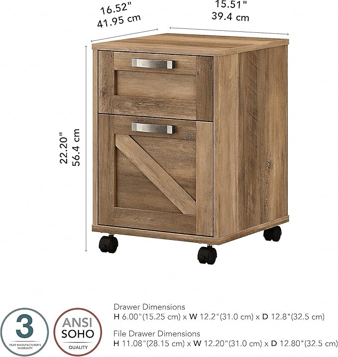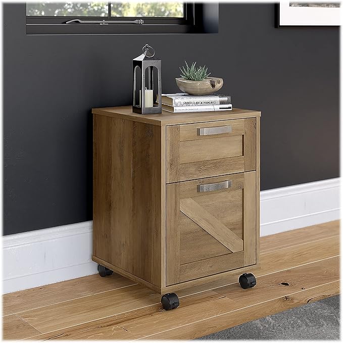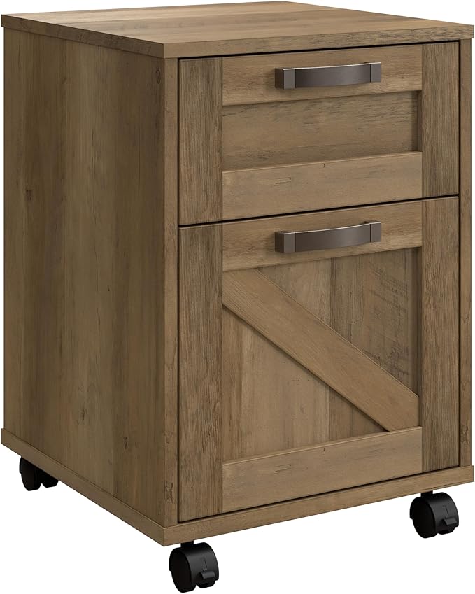 Bush Furniture Knoxville 2 Drawer Mobile File Cabinet, Rolling Document Storage for Home Office, Reclaimed Pine