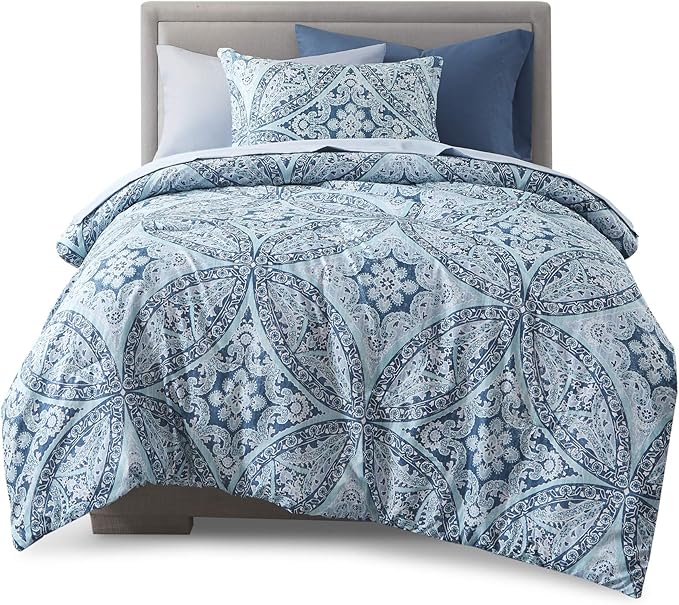 Comfort Spaces Bed in A Bag - Trendy Casual Design Cozy Comforter with Complete Sheet Set with Side Pocket, All Season Cover, Matching Shams, Twin XL(66 in x 90 in), Gloria, Damask Blue 6 Piece