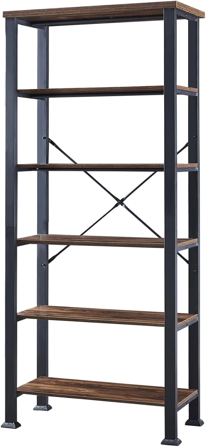HOMBAZAAR Bookshelf, 6-Tier Vintage Industrial Book Shelf, Rustic Wood and Metal Bookcase and Bookshelves, Free Standing Storage Large Bookshelf for Living Room, Bedroom and Kitchen, Brown