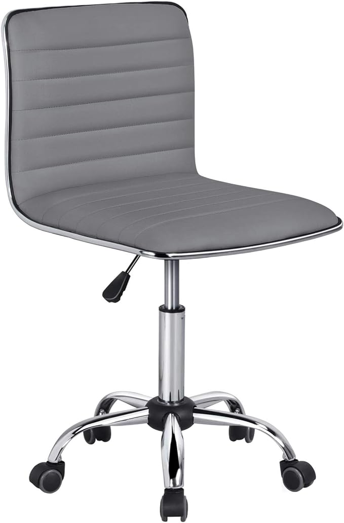 Yaheetech PU Leather Office Chair Task Chair, Ribbed Armless Desk Chair, Adjustable Low Back Executive Chair with Wheels Grey