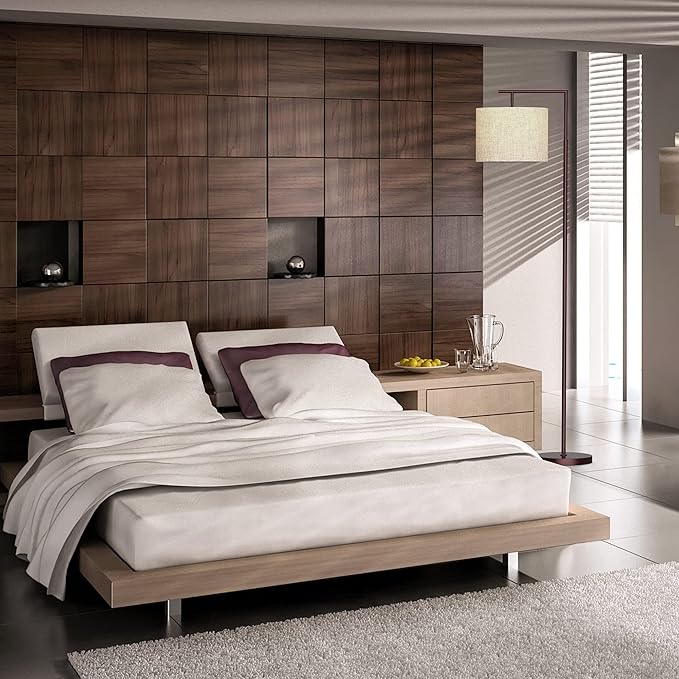 PESRAE Floor Lamp for Living Room, LED Floor Lamp with Remote Control, 4 Color Temperature LED Bulb Included, Modern Standing lamp with Linen Lampshade for Bedroom,Brown