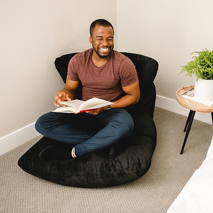 Big Joe Roma Bean Bag Chair, Black Plush, Soft Polyester, 3 feet