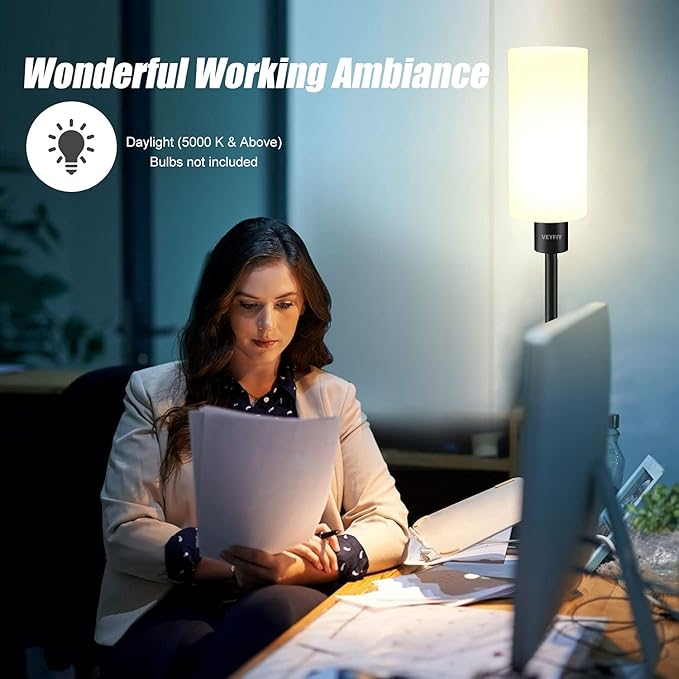 Floor Lamp for Living Room, Glass Lampshade Modern Standing Floor Lamp, 68 Inches Tall with E26 Socket for Office, Bedroom, Reading or Work - Black with White Lampshade, Bulb Not Included