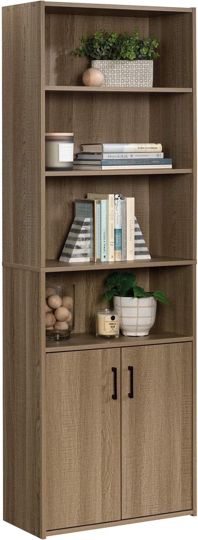 Sauder Beginnings Bookcase With Doors/ Book shelf, Summer Oak finish