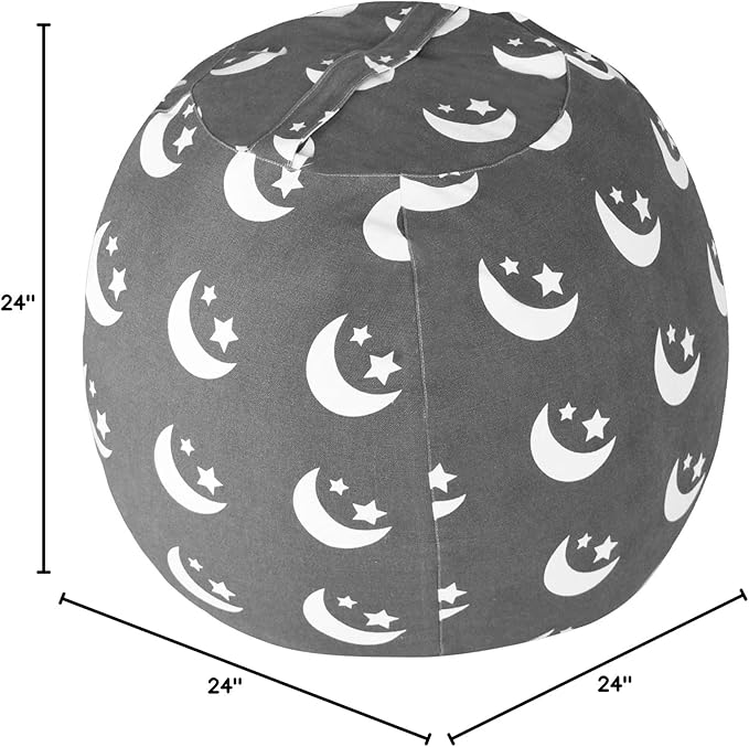 2 PCS Stuffed Animal Storage Bean Bag Chair Cover, Cotton Canvas Beanbag with Zipper for Organizing Kid's and Adults Room Stars Moon 24"