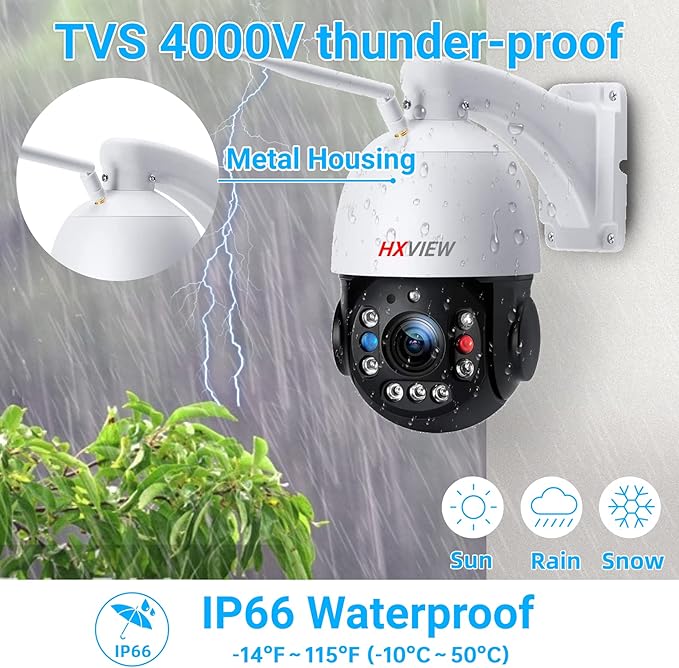 PTZ Camera Outdoor, 30X Optical Zoom Security Camera, 5MP Wireless WiFi RTSP IP Camera, 1000FT Night Vision, Auto Tracking, Emergency Strobe Light Alarm, Human Detection, 2-Way Audio