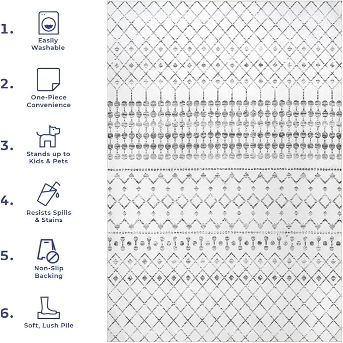 About This Stain-Resistant Material: Our machine washable rug is crafted from 100% Polyester that is stain-resistant, lightweight, and easy to...