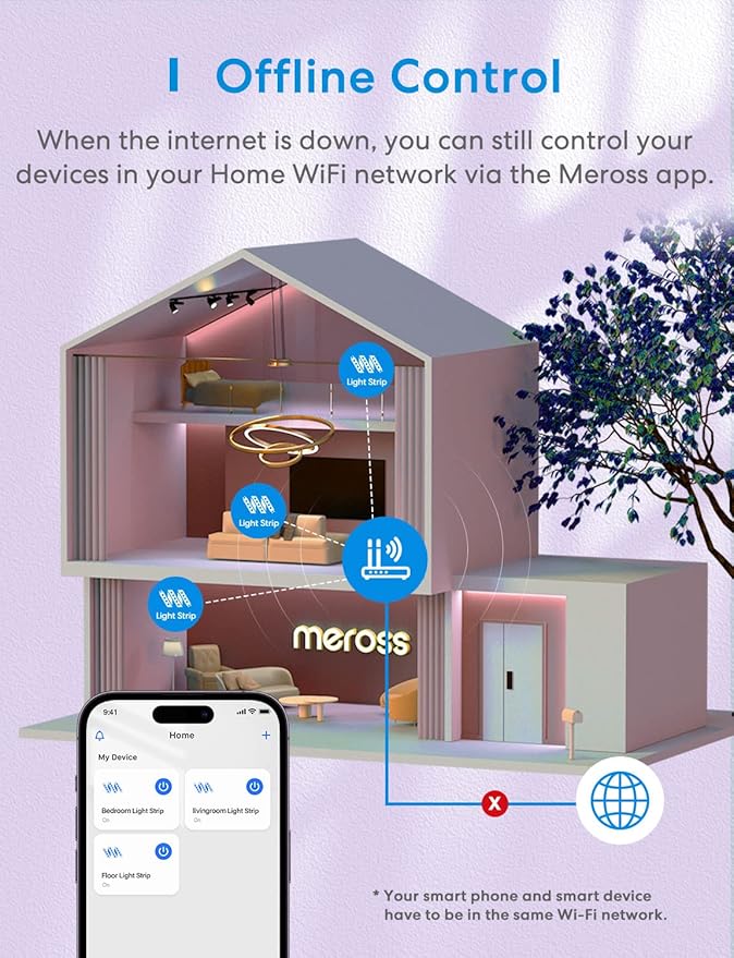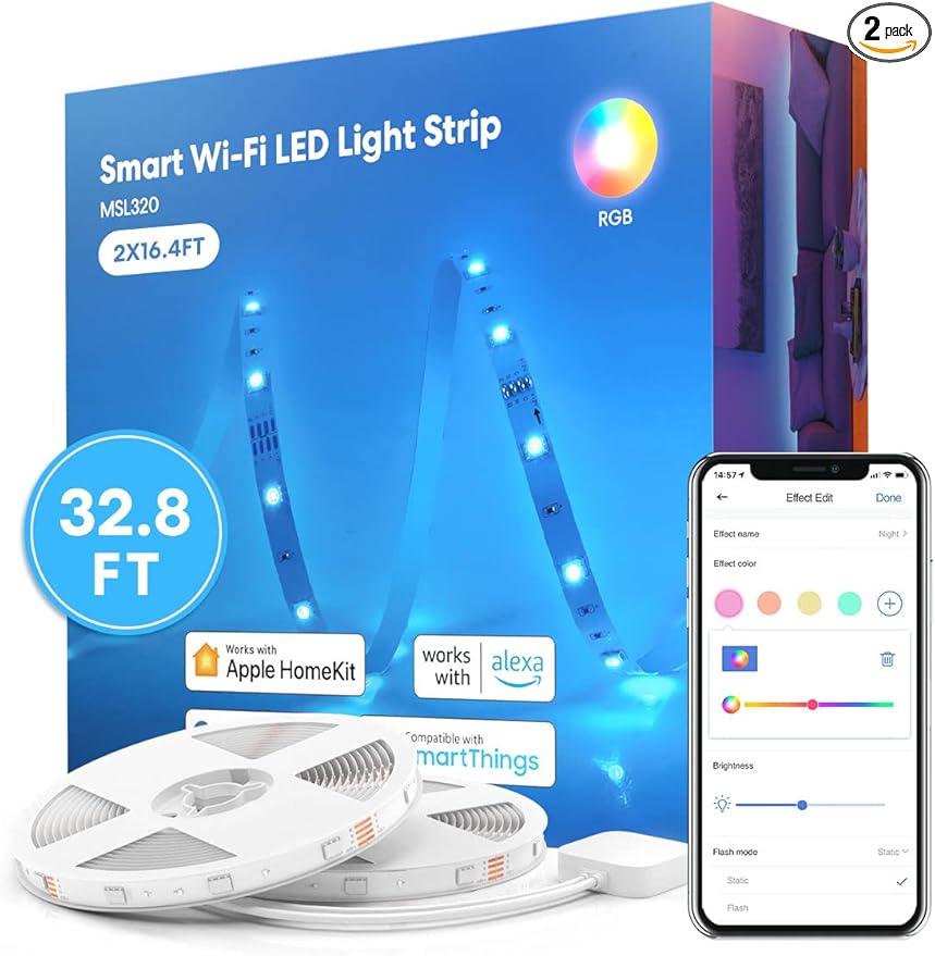 About This Works with Apple HomeKit: Control LED light strips with Siri voice commands or Meross app directly. Voice &...