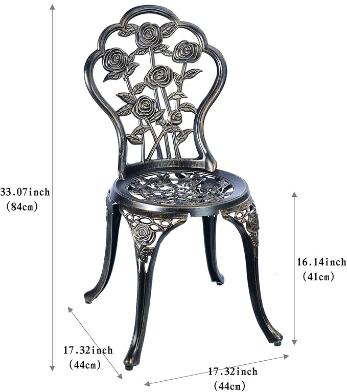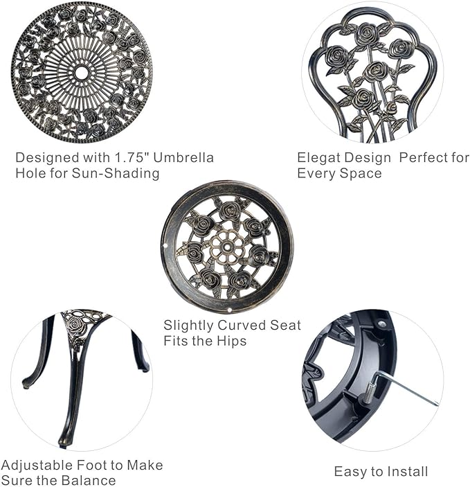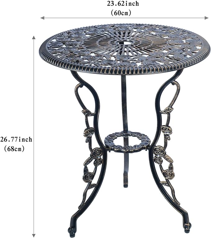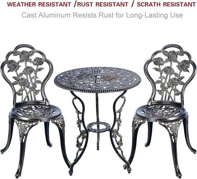 3 Piece Bistro Set,Outdoor Patio Set,Anti-Rust Cast Aluminum Bistro Table Set for Park Yard Front Porch Furniture(Antique Copper)