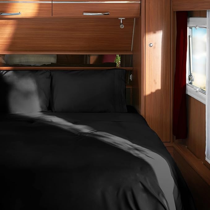 Mellanni RV Short Queen Sheets - 4 PC Iconic Collection Bedding Sheets & Pillowcases - Hotel Luxury, Extra Soft, Cooling Bed Sheets - Deep Pocket up to 10 inch (RV/Short Queen, Black)