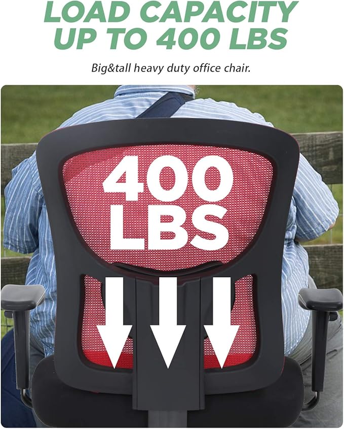 BestOffice Big and Tall Office Chair 500lbs Desk Chair Mesh Computer Chair with Lumbar Support Wide Seat Adjust Arms Rolling Swivel High Back Task Executive Ergonomic Chair for Home Office (Red)